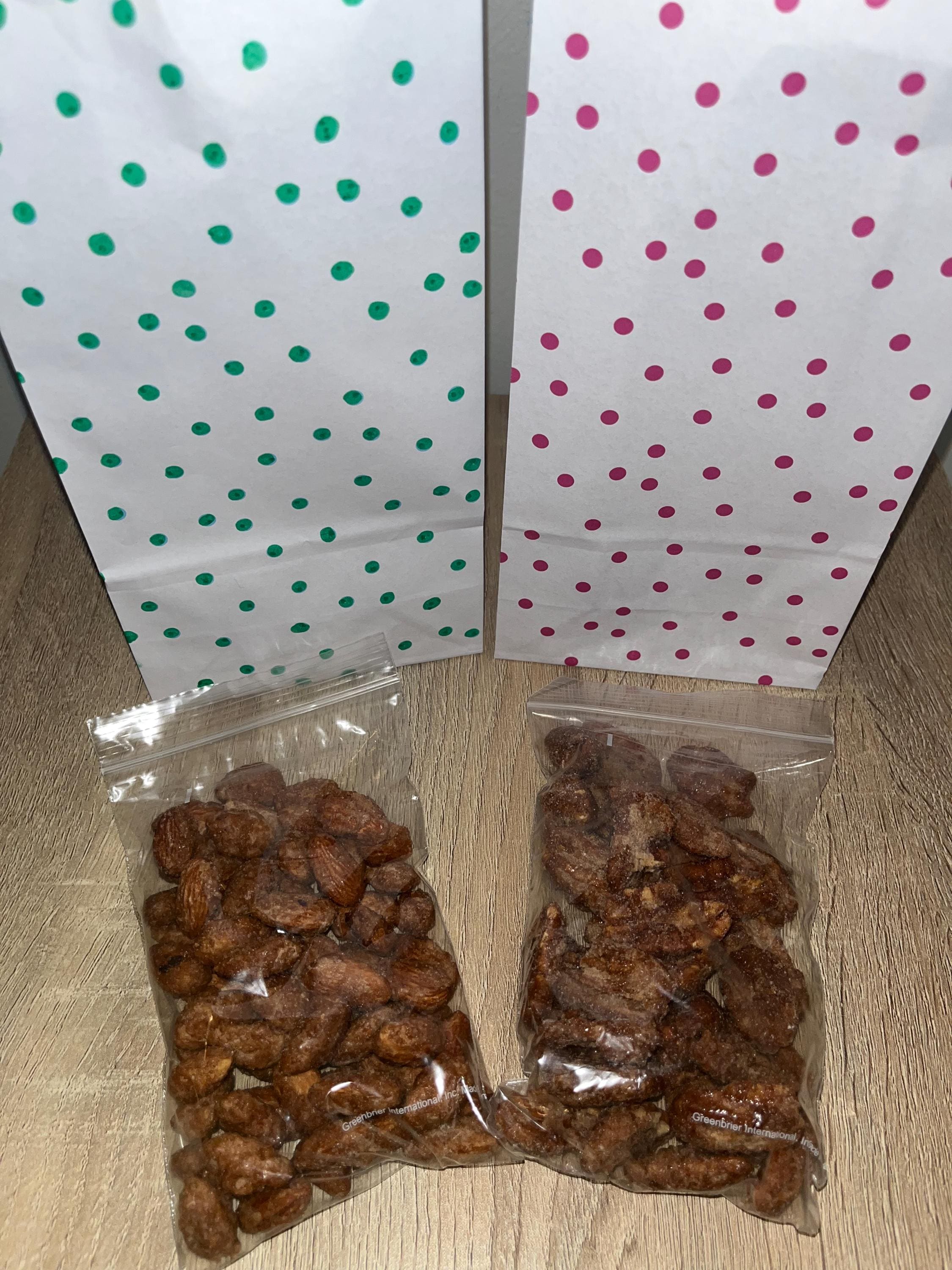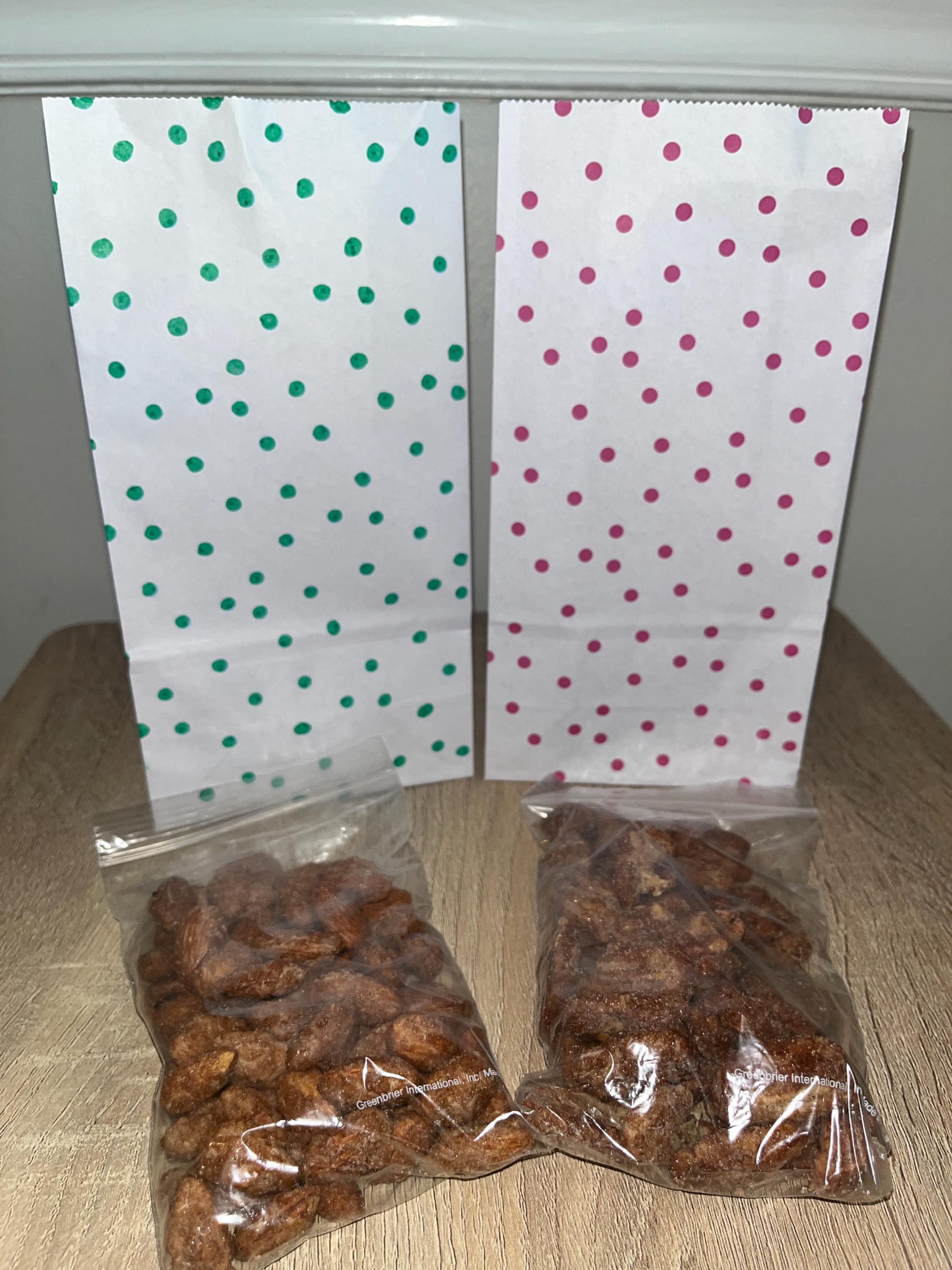 "I have an announcement!" Enjoy some "wicked" good cinnamon sugar glazed nuts! All orders are made fresh and include 2 quarter pound bags of your choice of delicious cinnamon sugar glazed nuts. Choose from almonds, peanuts, cashews, pecans, or a mix of all four!