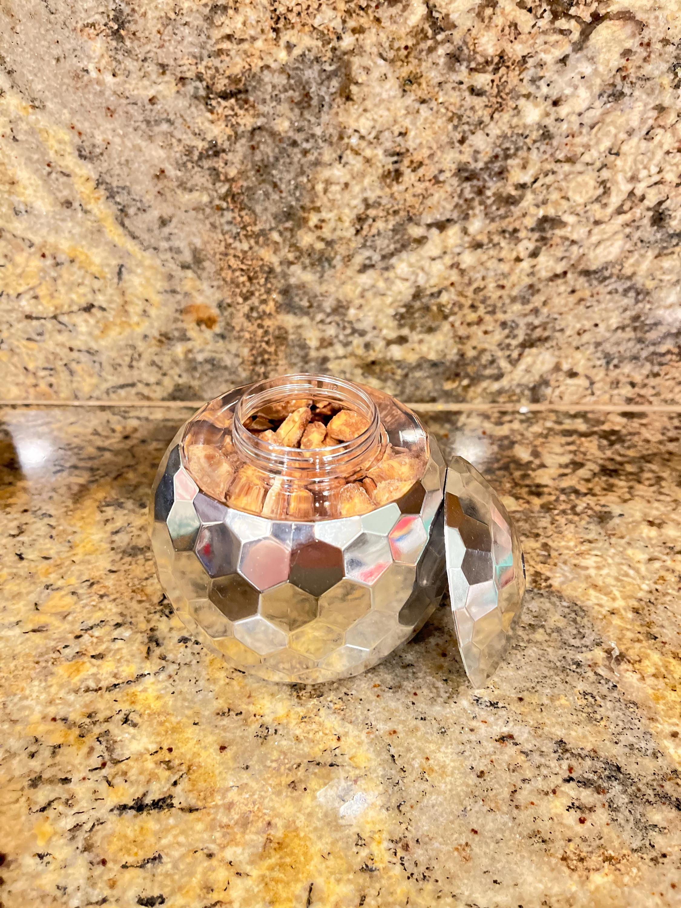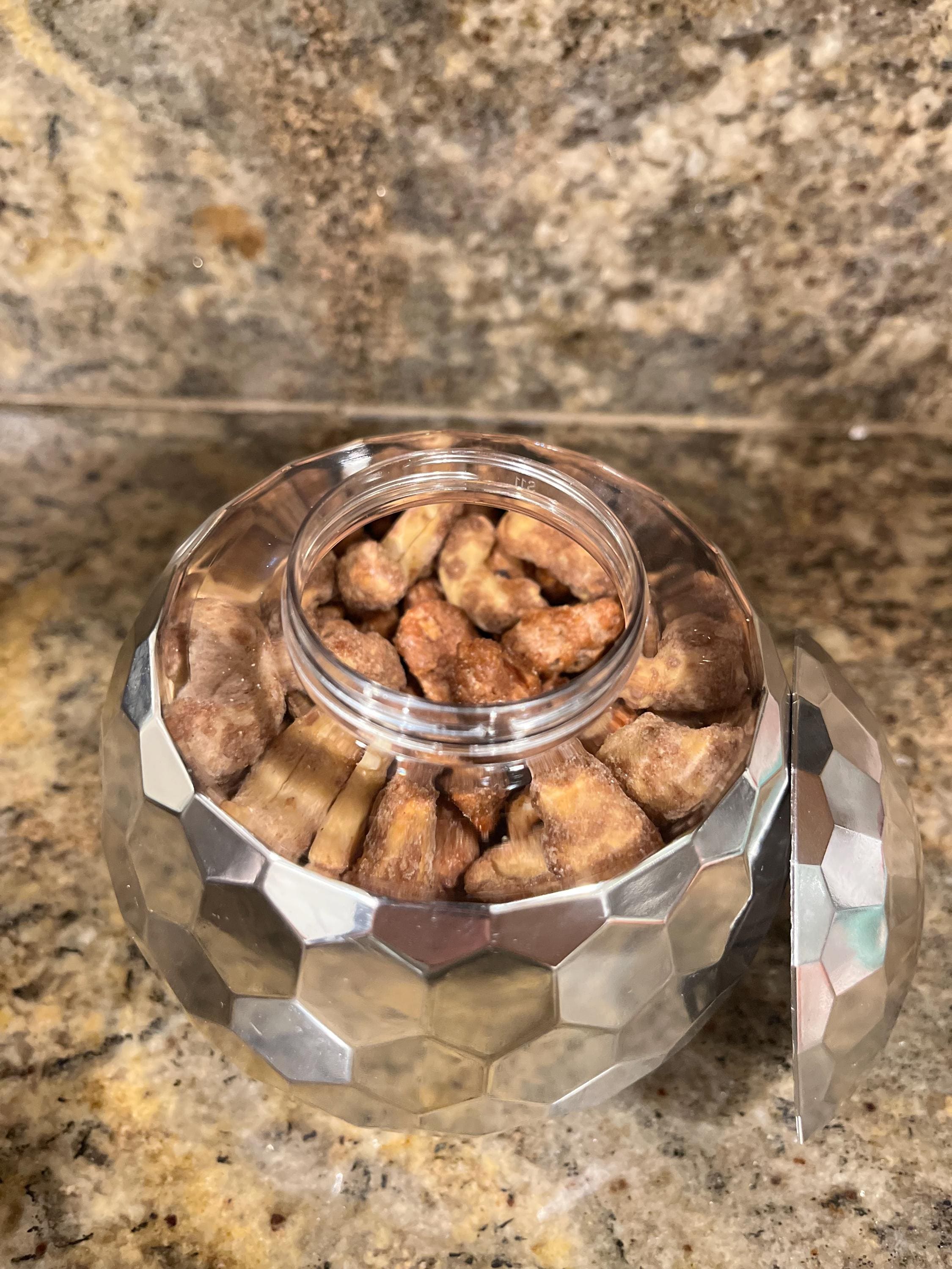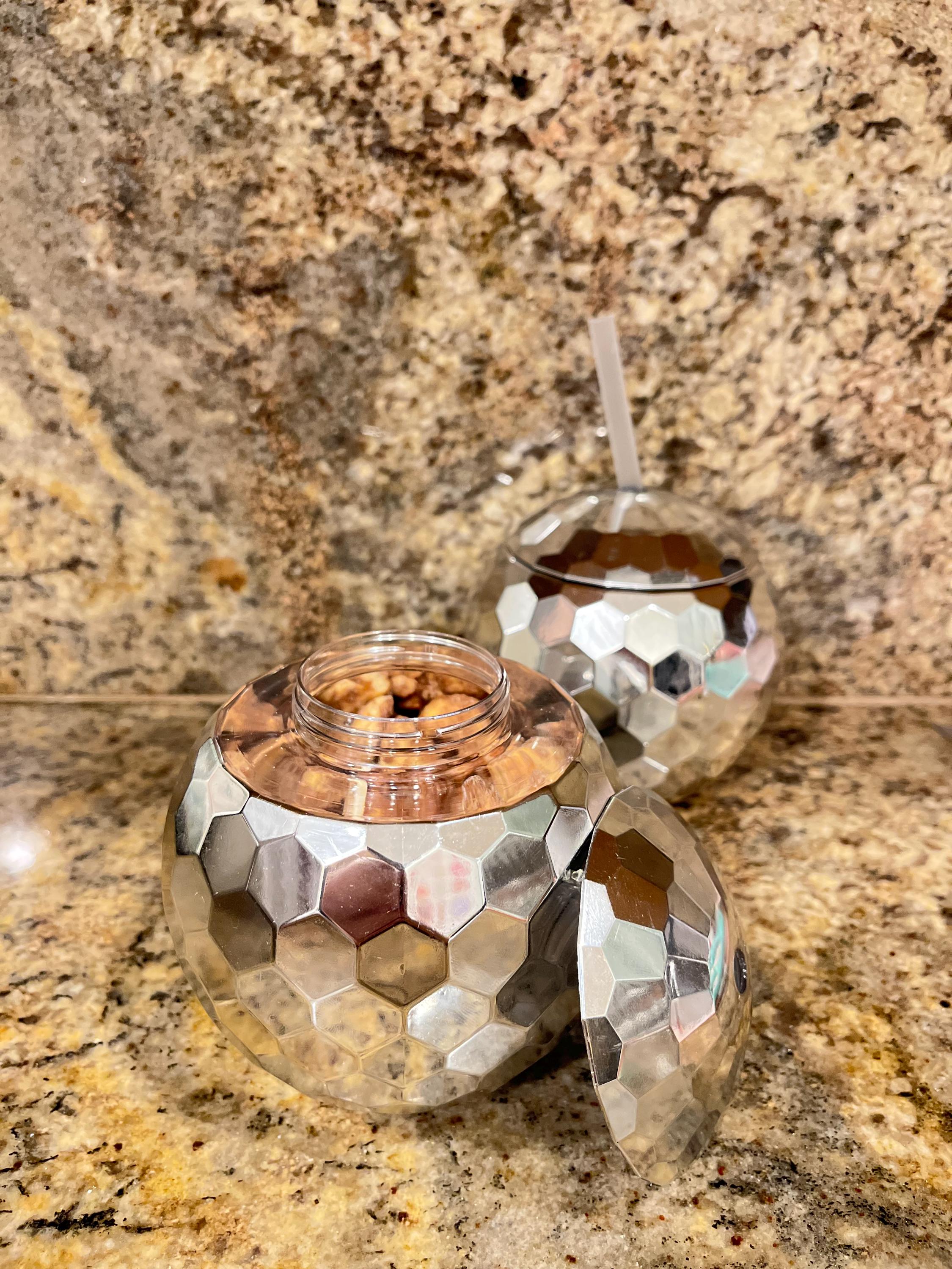 Make Tuesday "Dancing with the Stars" nights extra special with our cinnamon sugar glazed nuts in a disco ball cup.🪩✨ It's a mirror ball for your yummy DWTS snack! Choose between a quarter pound of almonds, pecans, cashews, peanuts, or a mix of all four served in a mini disco ball cup of course!